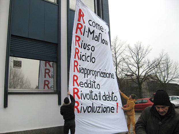 “In 2012 werd Maflow, een historische autofabriek in Trezzano (nabij Milan), gesloten vanwege financiële speculatie door de eigenaren. 330 werknemers werden ontslagen. We gaven niet op en door te blijven vechten, heroverden we de fabriek en lanceerden we het RIMAFLOW-project. Het was onze wedergeboorte.